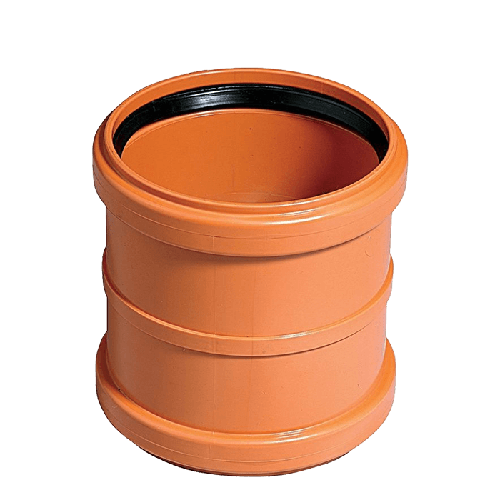 Соединение обеспечивается за счёт эластичных резиновых уплотнительных колец, установленных в раструбах, что гарантирует герметичность, компенсирует монтажные допуски и позволяет системе сохранять подвижность при возможной осадке грунта. Муфты НПВХ применяются при прокладке наружных и внутренних трубопроводов, а также при ремонте повреждённых участков. Благодаря долговечности, простоте монтажа и надёжности, они являются важным элементом современных канализационных систем, обеспечивая прочное и герметичное соединение на весь срок эксплуатации — до 50 лет и более.