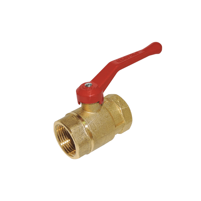Кран шаровой латунь 11б27п5 Ду 32 Ру16 ВР полнопроходной рычаг красный